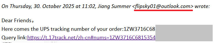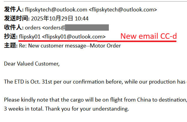 (Later we also checked the address listed on the website — it turned out to be a virtual office.)2. However, the first invoice listed the company as Guangdong Flipsky Technology Company Limited.3. The following invoices then came from SHANDONG ARK INTERNATIONAL TRADE CO., LTD.A similar rotation happens with the email addresses used to reply: