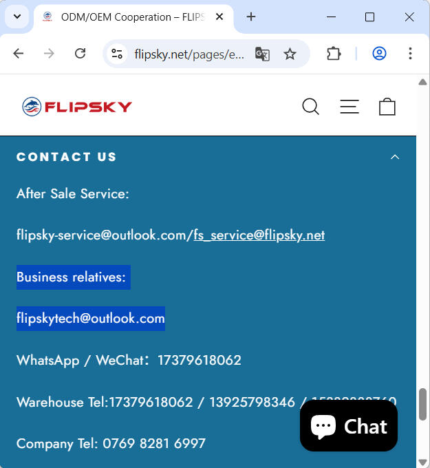 1. By visiting Flipsky’s official website and writing to the ‘Business relatives’ or ‘ODM/OEM cooperation contact’ email address. You can also write through the web form — inquiries sent there receive replies from the same email.